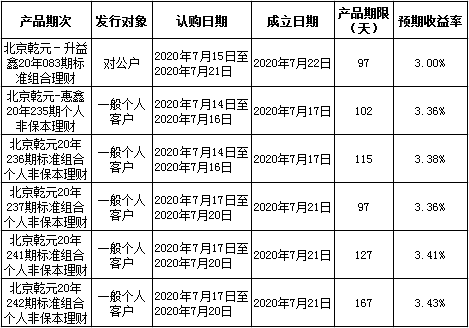 中国建设银行北京市分行定于2020年7月13日至2020年7月17日发行理财产品,现将相关发行情况公告如下: