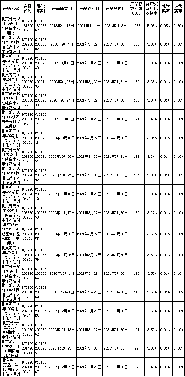 根据与投资者的约定,中国建设银行发行的下列理财产品已经到期并完成资金兑付,现将有关情况公告如下: