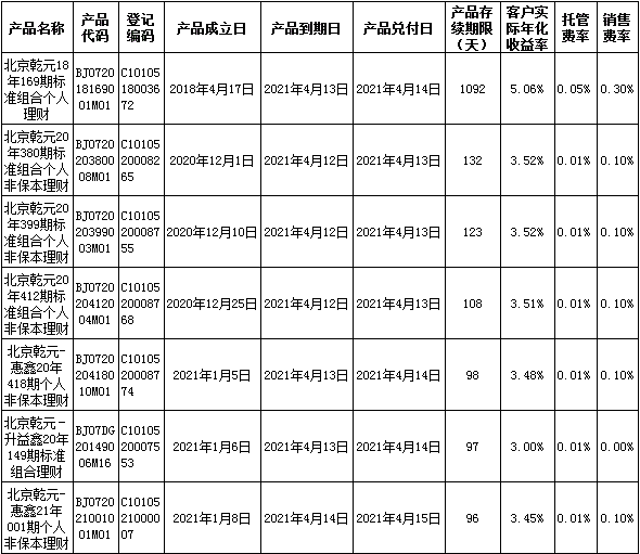 根据与投资者的约定,中国建设银行发行的下列理财产品已经到期并完成资金兑付,现将有关情况公告如下: