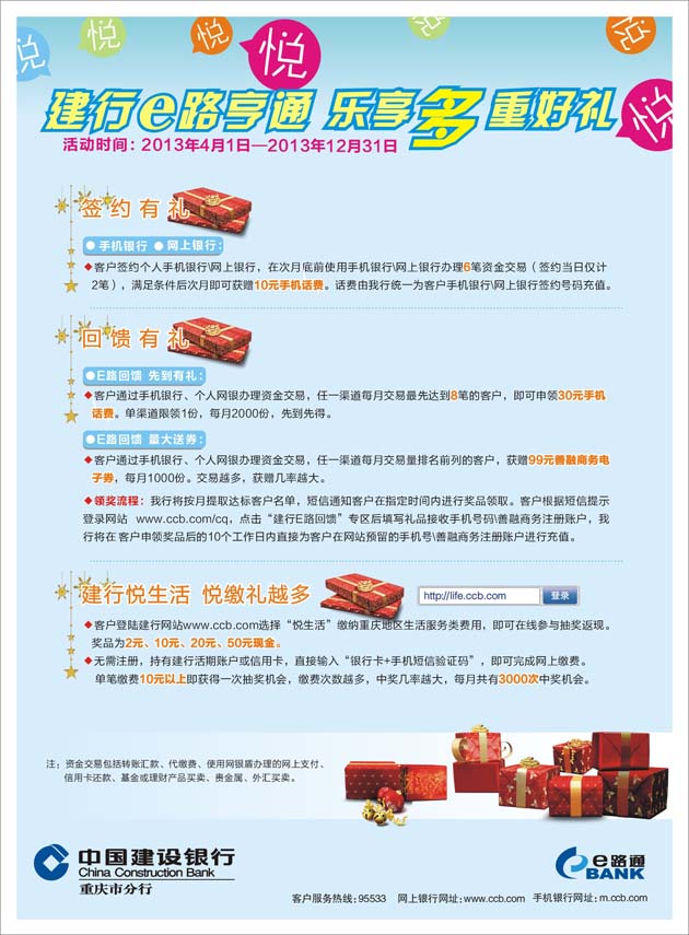 个人电子银行:建行e路享通 乐享多重好礼