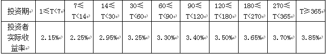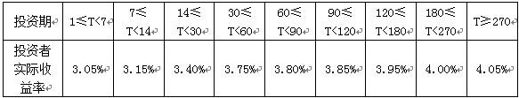 2017年12月06日至2017年12月31日投资者实际收益率如下表所示: